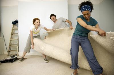 The first step is to tear out the existing carpet. Starting at a wall or corner get the edge and lift the carpet clear of the nail strip under it. Lift it all the way around the edge, then roll it up and get it out of the room. Normal rolls of carpet usually have underlay or some other padding underneath the roll. Remove this too and why you are there also use a screwdriver or crowbar and remove the nail strips from around the edge of the room as well.