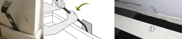 Now you have your floor down, carefully remove the spacers from one wall, and then attach the Skirting or Scotia to the wall covering the expansion gap. Work your way around all the walls cutting and reattaching the Skirting or Scotia. Where you need to join between your new flooring, and existing floor in different room, or over an expansion gap, use metal Coverstrips to make the transition. If you have stairs that leave off from your VinylCLICK & LOCK Planks, attach stairnosings to the leading edge of the stairs to provide protection and ensure appropriate grip on your stairs.Cutting yourplanks to walls and obstacles.