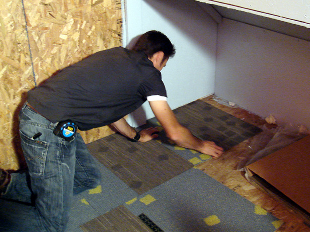 To install carpet tiles you will need a good marker, a utility knife ( that takes strong blades ) a scraper and straight edge or metal ruler. You will also need glue, or double sided tape or dots to stick your tiles down.