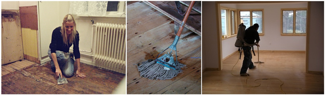 The floor surface should then be swept, mopped then vacuumed.