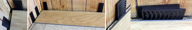 When we are installing the flooring, make sure you use spacers between the walls and the edge of the planks, and that any trimmed planks allow for this space.