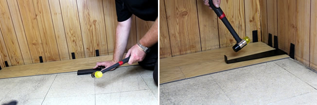 Soft-Faced Hammer. – This eases the impact when hitting the Tap Block / or Pull Tool, and absorbs part of the impact. This makes it easier to install the flooring without damaging the edge. Given that you are not hitting the CLICK & LOCK Planks directly